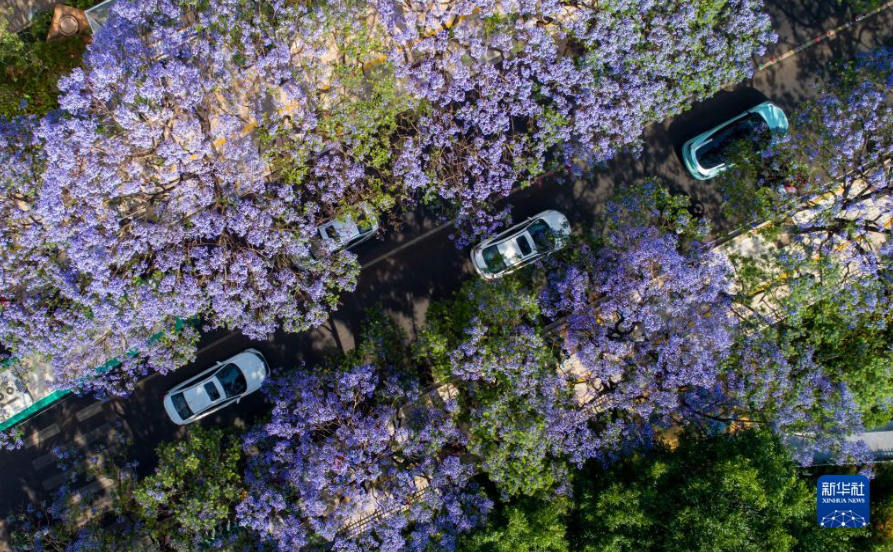 新华全媒+丨蓝花楹绽放:春城昆明的“花式浪漫”