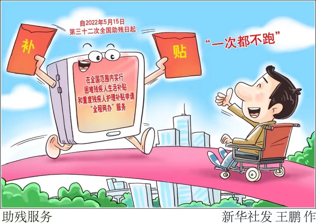 ◎民政部、中国残联联合印发通知,决定自15日起,在全国范围内实行困难残疾人生活补贴和重度残疾人护理补贴申请“全程网办”服务。