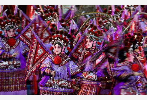6月24日晚,为期12天的第九届中国秦腔艺术节在西安落下帷幕。自6月13日开幕以来,33个剧团携73台优秀秦腔剧目汇聚古城。通过线上线下相结合的方式,进行了优秀剧目展演、名家“走进群众”、名团“走进校园”、名剧“走进影院”、高峰论坛等主题活动,让观众饱享了秦韵盛宴,展示了秦腔传承发展的成果。 (新华社记者 刘潇 摄)