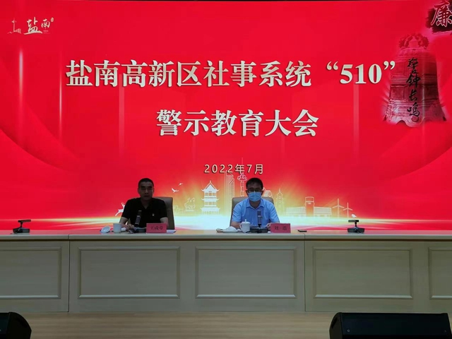 7月22日下午,盐南高新区社事局召开2022年社事系统“510”警示教育大会,会议集中观看了警示教育片《把纪律挺在前面》。社事局党委书记王成章出席会议并讲话,社事局副局长、纪委书记刘浩主持。局机关全体工作人员,街道卫生服务中心(院)全体工作人员参加会议。