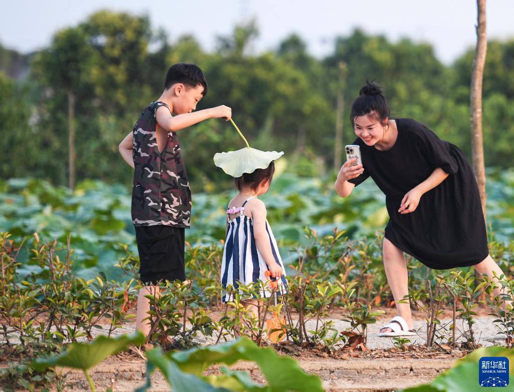 这是8月4日在河南省南阳市淅川县九重镇邹庄村拍摄的农业大棚(无人机照片)。河南省南阳市淅川县九重镇邹庄村是丹江口水库的一个移民村。2011年6月,因南水北调中线工程建设,邹庄村从九重镇原油坊岗村搬迁至此。近年来,当地不断加大对库区移民的扶持力度,积极发展猕猴桃、草莓、莲藕等特色农业及采摘、民宿、餐饮等文旅项目,带动村民增收致富。同时,当地对村庄进行绿化、亮化、美化,村容村貌焕然一新。新华社记者 张浩然 摄