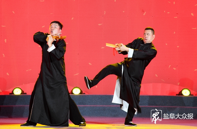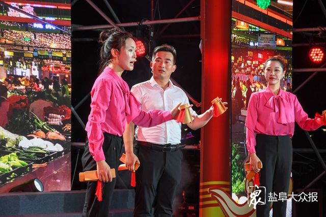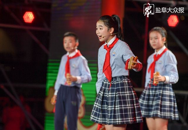张家港市文化馆、张家港市万红小学的少儿快板《长大后我想成为你》。8月13日晚,江苏省第四届快板大赛颁奖仪式暨文化惠民演出在盐都吾悦广场举行。快板大赛获奖选手和我省的曲艺名家为观众献上了一台精彩的曲艺节目。江苏省快板大赛每两年举办一届,自2016年创办以来,推出了一大批人民群众喜闻乐见的优秀快板作品。活动始终坚持思想性、群众性、艺术性相统一,坚持公开、公平、公正,坚持以评促创、便民惠民、务实节俭,得到了全省广大曲艺工作者的好评,成为长期落户盐都的品牌活动之一。 盐阜大众报报业集团融媒体记者 周晨阳 摄