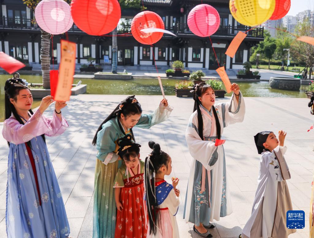 9月6日,汉服爱好者们在安徽省淮北市乾隆湖开展“我们的节日·中秋”主题活动。中秋临近,各地举办活动迎佳节。王文/摄