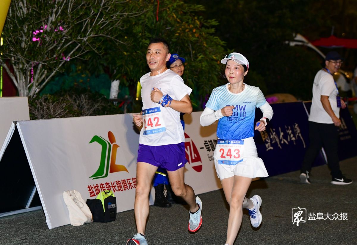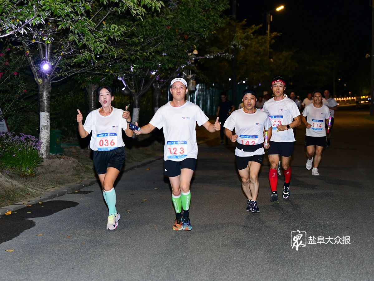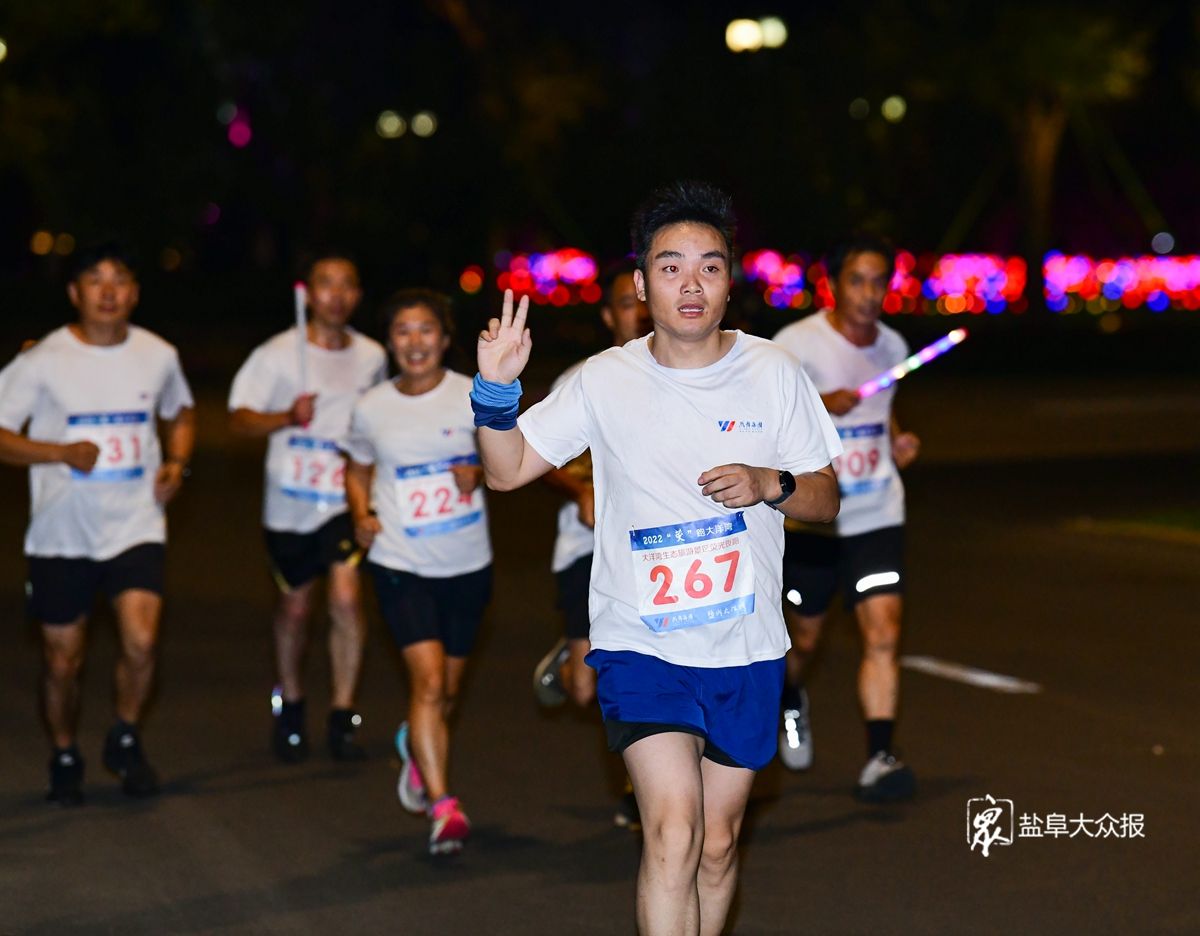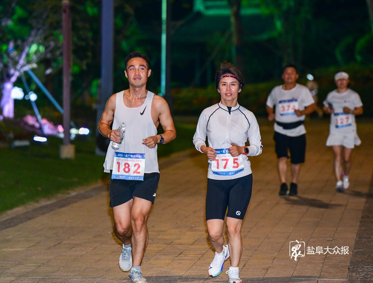 9月9日晚,在盐城大洋湾生态旅游景区,2022大洋湾金秋游会荧光夜跑系列活动第一场夜跑于19点鸣枪开跑!参赛选手们舞动各色荧光棒从起始点出发,夜色下、光影中,涌动的选手们犹如一颗颗闪亮的星星,在跑道上留下了青春的足迹,形成了一道亮丽的风景线。盐阜大众报报业集团融媒体记者 王焱 杨毅 实习生 胡瑞宸