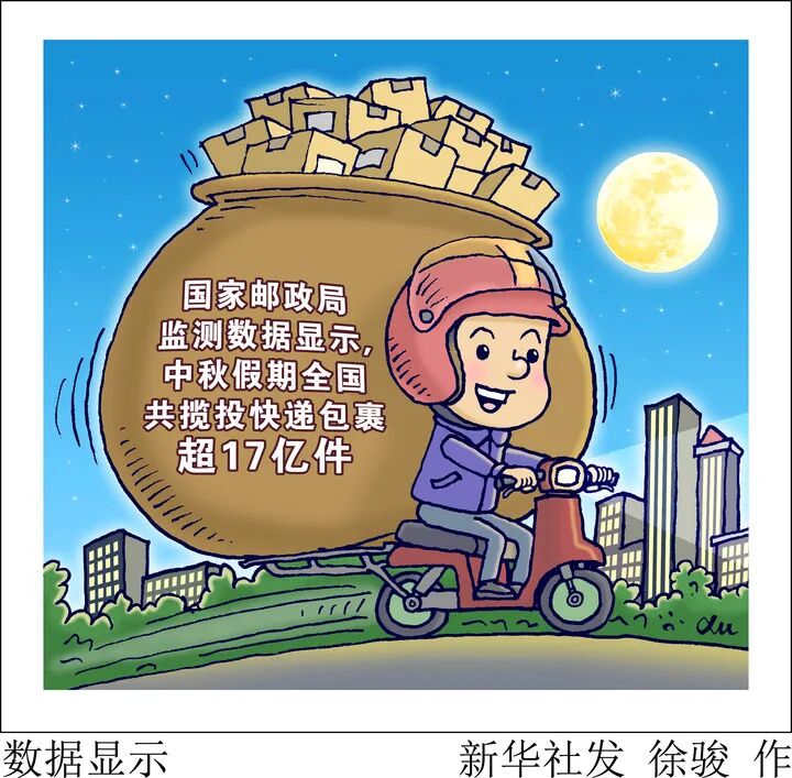 ◎ 国家邮政局监测数据显示,中秋假期全国共揽投快递包裹超17亿件。