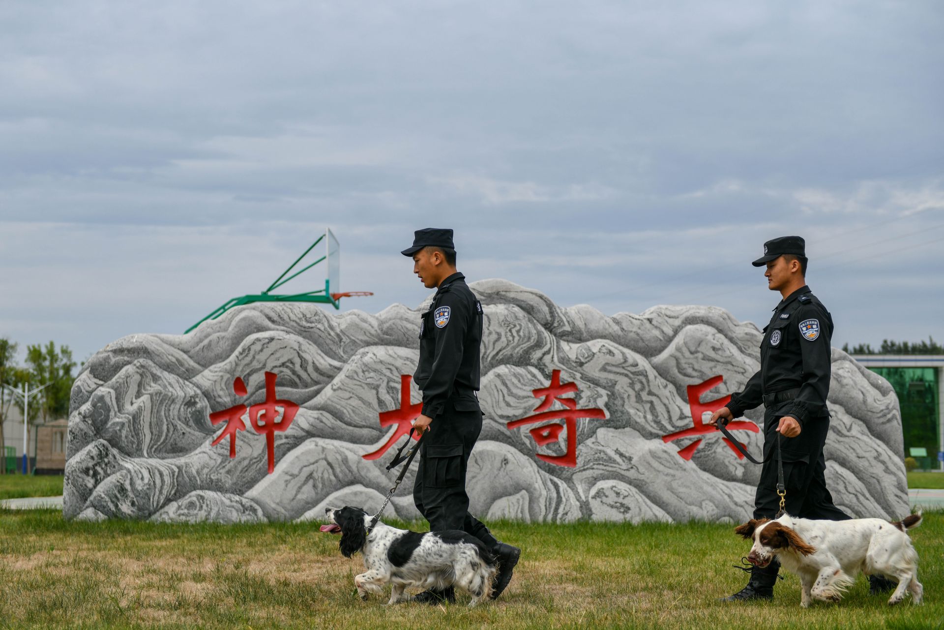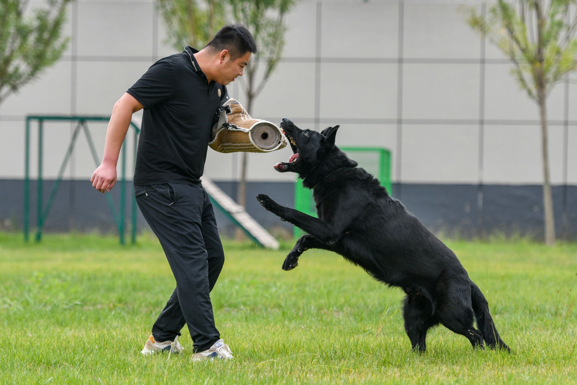 9月20日,治安犬“黑豹”进行扑咬训练。