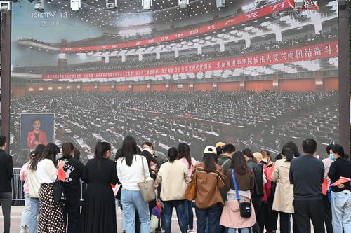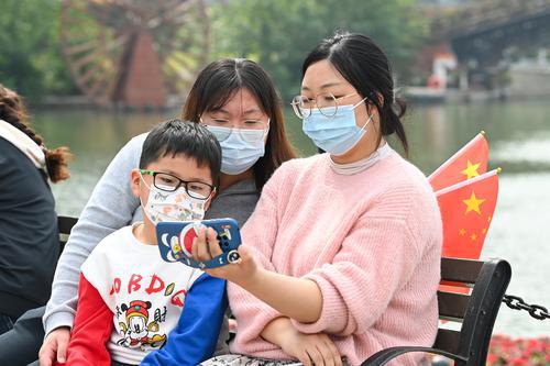 10月16日上午,市民正用手机收听收看中国共产党第二十次全国代表大会开幕会。