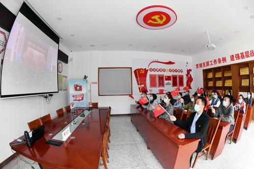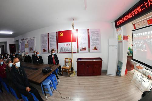 10月16日上午,亭湖区大圣社区组织辖区党员代表收听收看中国共产党第二十次全国代表大会开幕会。