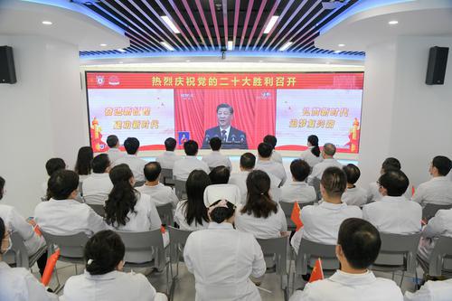 10月16日上午,医护工作者正集中收听收看中国共产党第二十次全国代表大会开幕会。