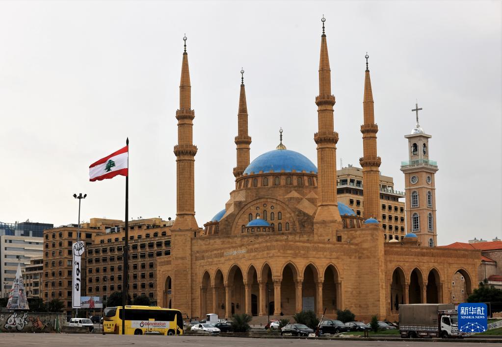 11月22日,黎巴嫩首都贝鲁特街头国旗飘扬。当日是黎巴嫩独立79周年。新华社记者 刘宗亚 摄