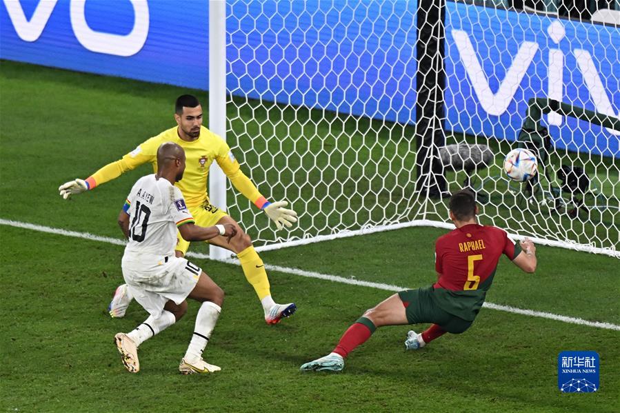 11月24日,加纳队球员安德烈·阿尤(左)在比赛中射门得分。当日,在卡塔尔多哈974球场进行的2022卡塔尔世界杯足球赛H组比赛中,葡萄牙队以3比2战胜加纳队。新华社记者 辛悦卫 摄
