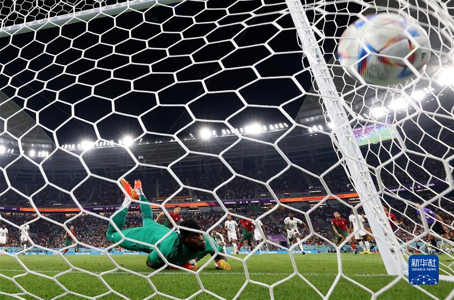 11月24日,葡萄牙队球员克·罗纳尔多在比赛中主罚点球破门。当日,在卡塔尔多哈974球场进行的2022卡塔尔世界杯足球赛H组比赛中,葡萄牙队以3比2战胜加纳队。新华社记者 曹灿 摄