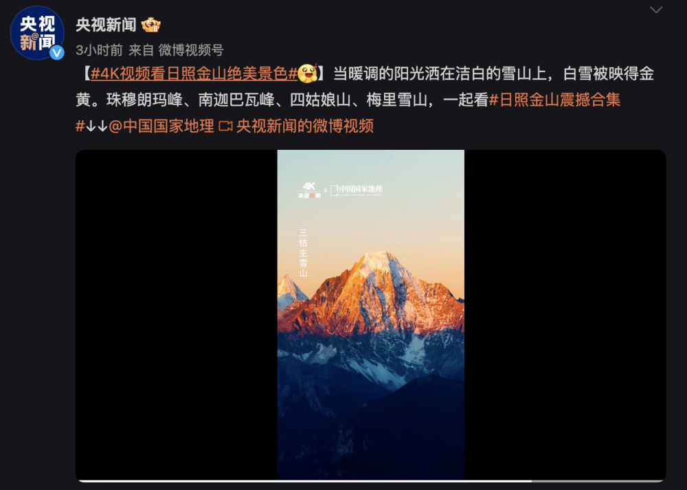 当暖调的阳光洒在洁白的雪山上,白雪被映得金黄。珠穆朗玛峰、南迦巴瓦峰、四姑娘山、梅里雪山,一起看日照金山震撼合集!