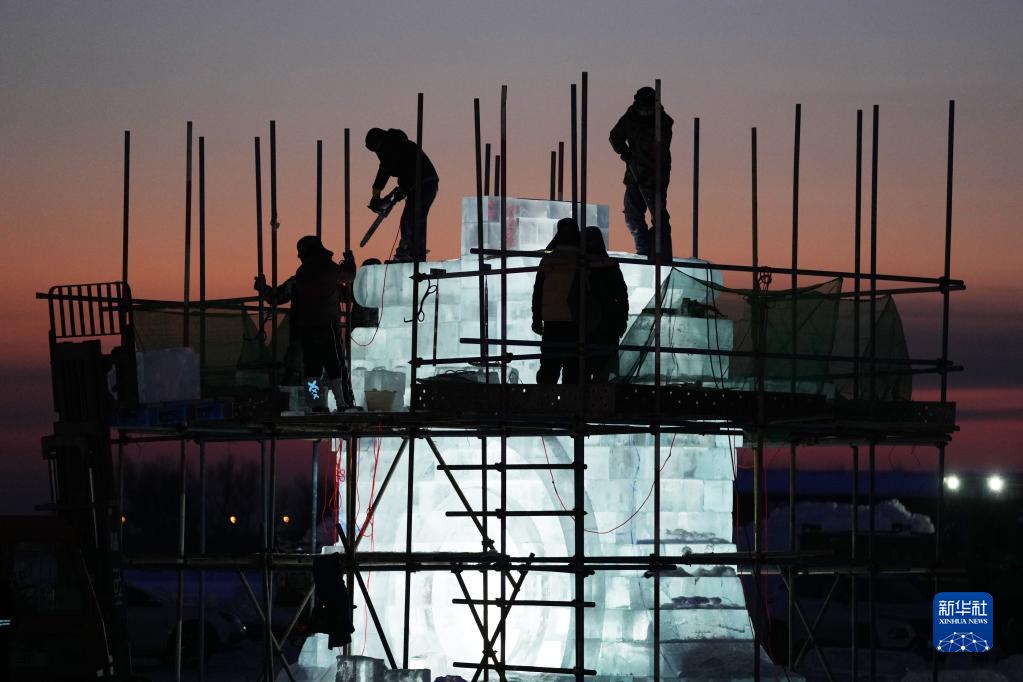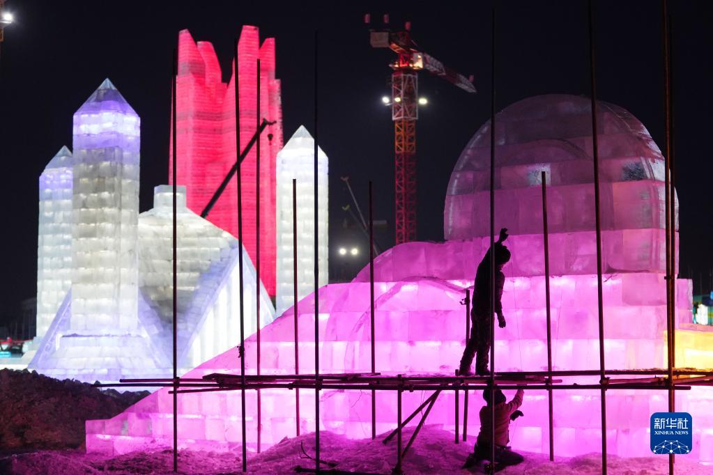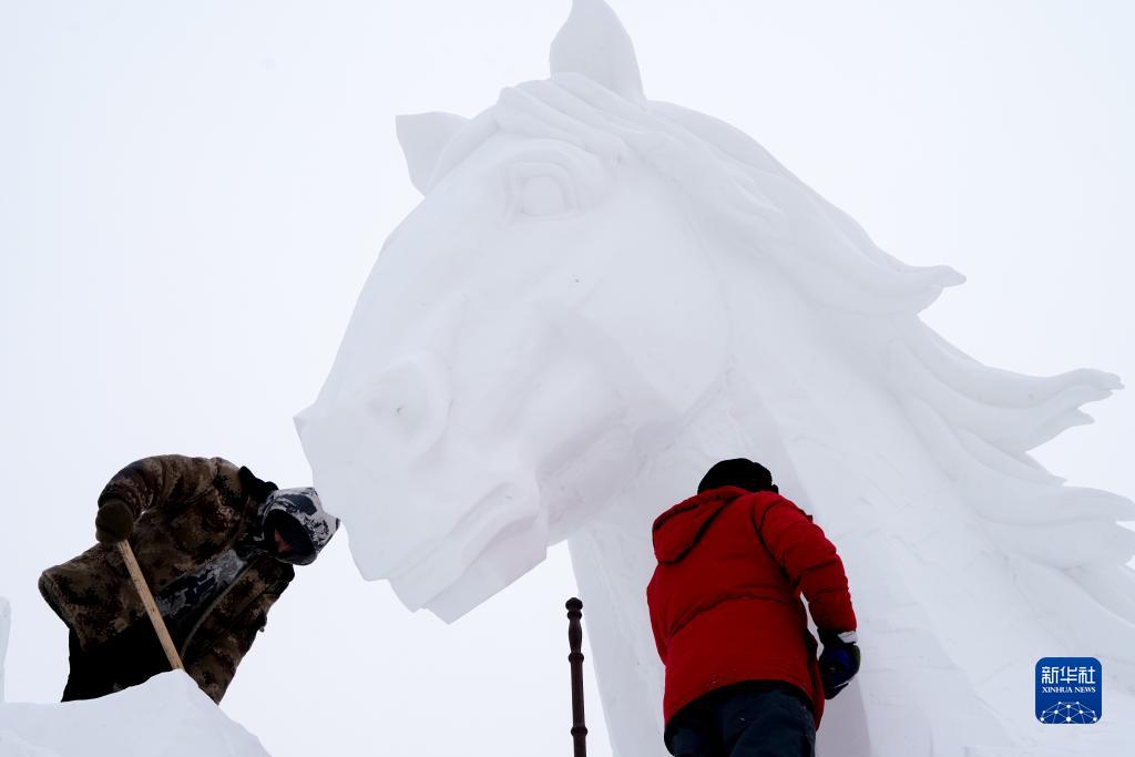 第35届太阳岛雪博会雪雕作品渐次完成雕刻