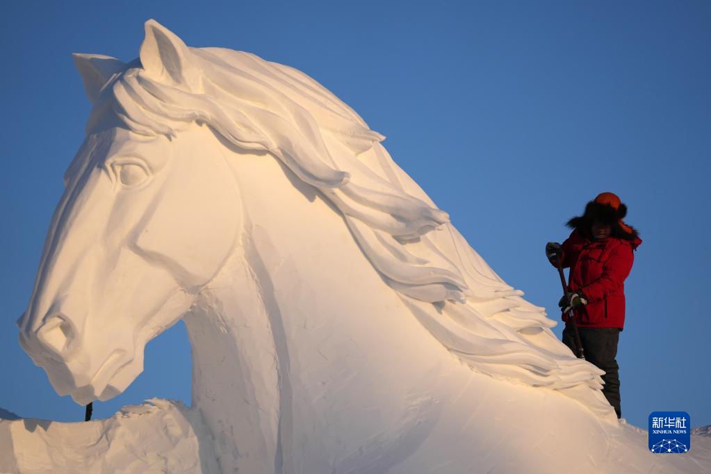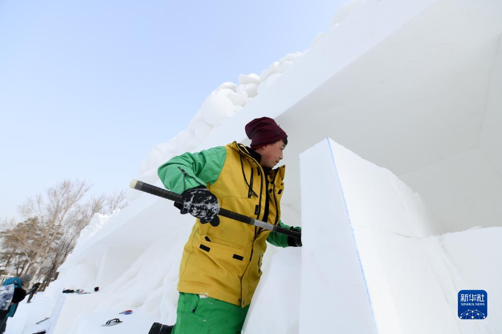 目前,哈尔滨市第35届太阳岛雪博会正全力推进雪雕作品雕刻作业。园区内大部分雪块已经开铲,部分作品已完成雕刻。 本届太阳岛雪博会以“冰雪之都 梦雪奇缘”为主题,将以大型雪雕作品为艺术载体,打造六大核心体验区及三大氛围拓展区的景观布局。 新华社记者 王松 摄