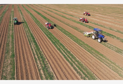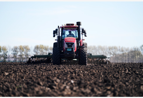 在黑龙江省拜泉县兴华乡顺利村,农机在进行大垄整地(2022年10月15日摄)。新华社记者 王建威 摄