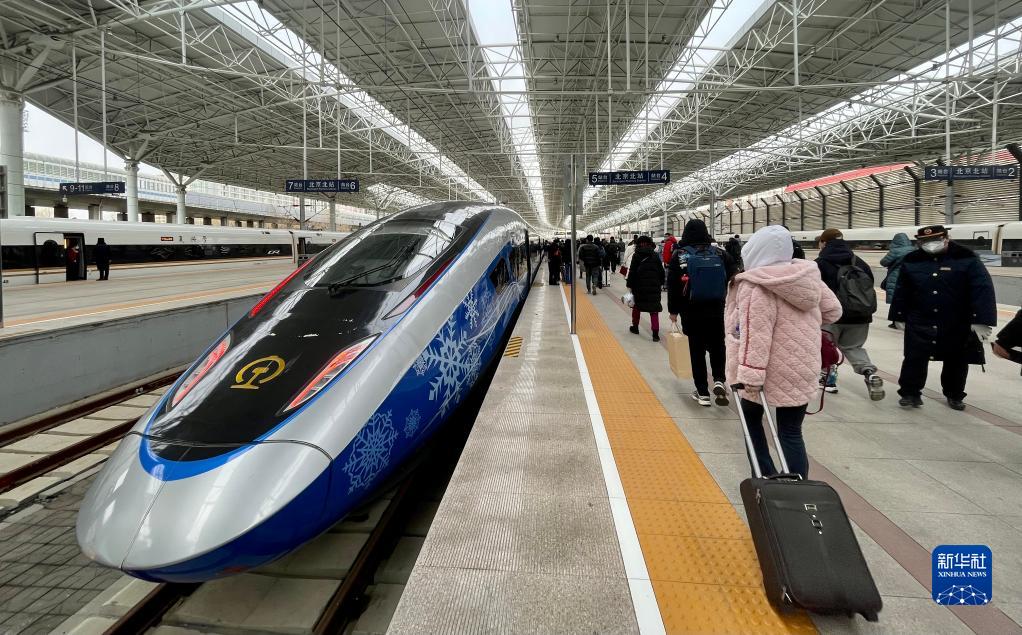 12月21日,旅客在北京北站乘坐高铁出行。近期,首都北京主要铁路客运枢纽站之一的北京北站日渐繁忙,每日有大批旅客从这里乘车出行。新华社记者 李欣 摄