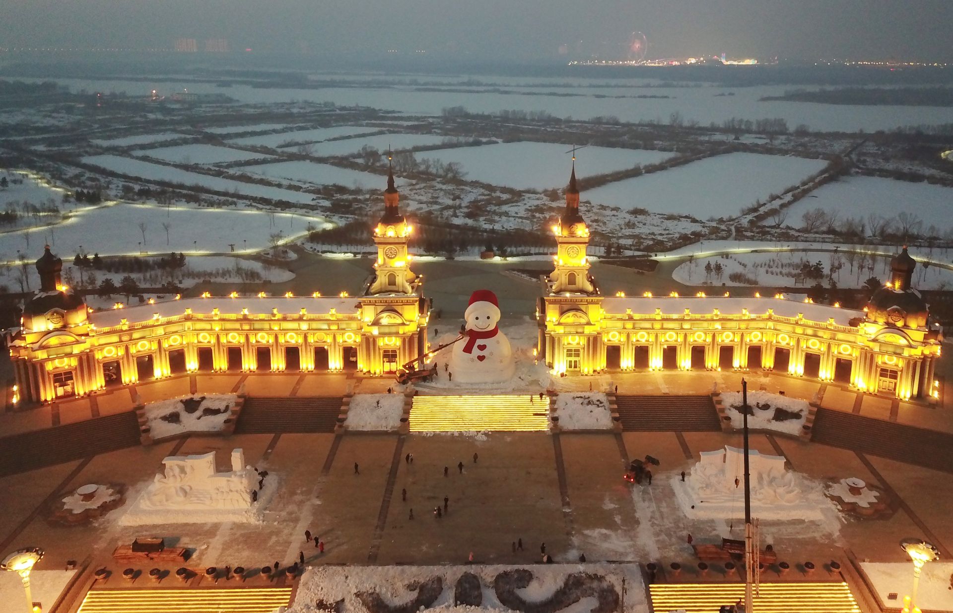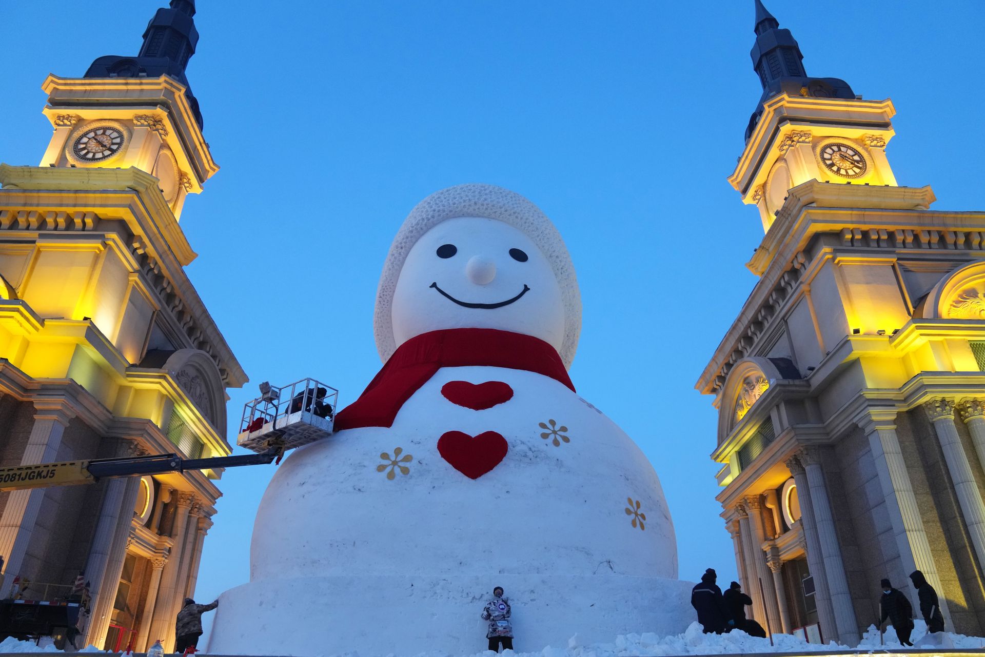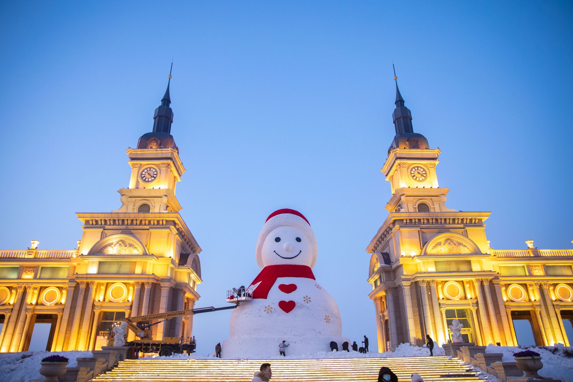 哈尔滨“超治愈”大雪人“回归”松花江畔