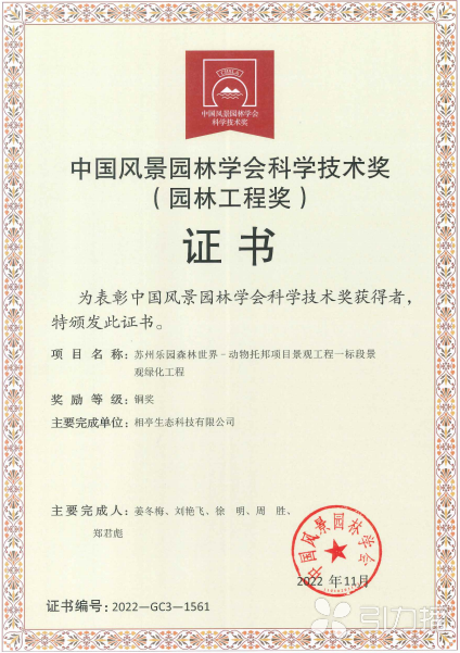 近日,苏州乐园森林世界荣获2022年度中国风景园林学会科学技术奖,为刚成功创建国家4A级景区的苏州乐园再次增色添彩。