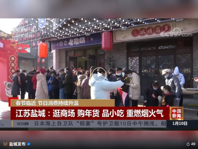 春节临近,大家逛大集、买年货,节日消费持续升温。在江苏盐城,促销活动如火如荼,当地通过发放餐饮消费券、购物消费券、汽车消费券等形式,推动消费市场快速复苏。在盐城建军路商业街,地道的传统美食小吃吸引着络绎不绝的消费者,盐镇水街包子年货大会打造出传统年味儿新场景。过去的一周,商业街的客流量和销售额都增加迅速。商家也备足了货源,把营业时间增长了一个小时左右。