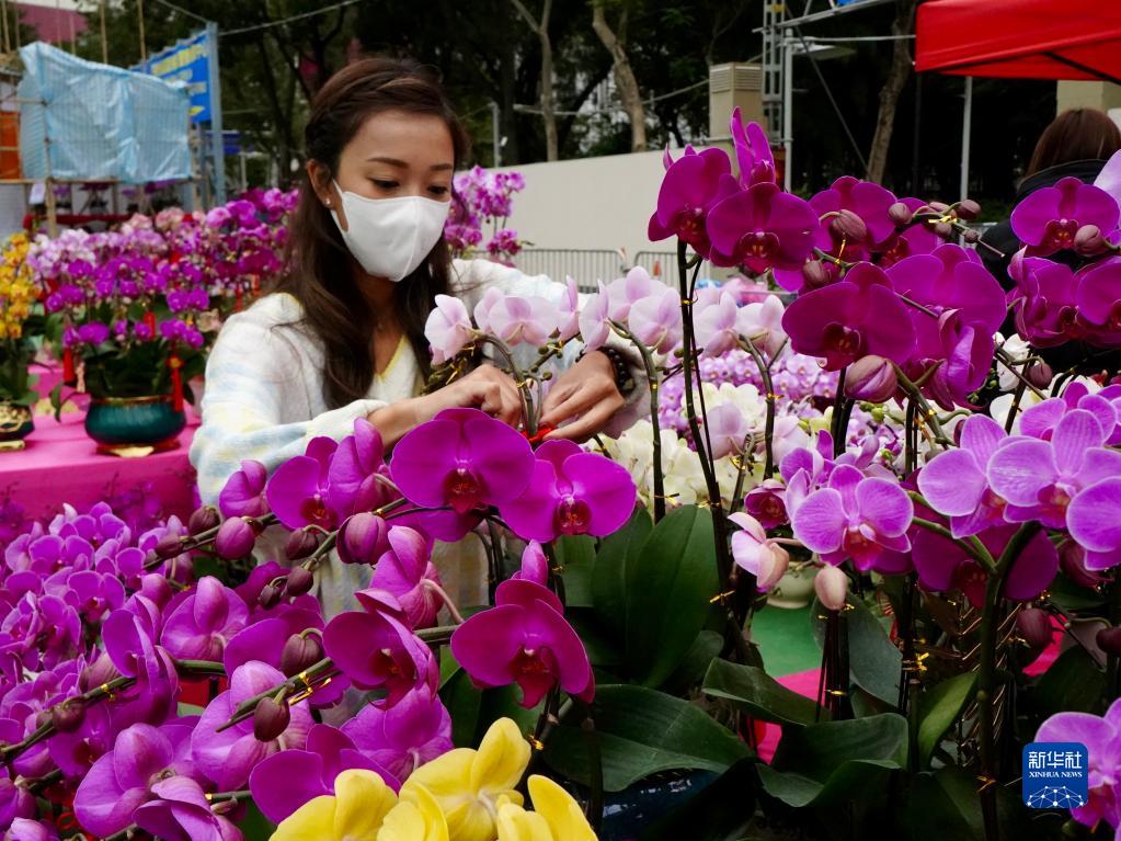 1月16日,在维多利亚公园年宵花市,香港女孩吴乐琳在布置自家的花摊。新华社记者 褚萌萌 摄过去三天,香港女孩吴乐琳都在忙着一件“花田喜事”。在维多利亚公园内,她和父母一直在布置自家的两个花摊,有一晚甚至忙到凌晨三点。 近日在香港,和吴乐琳一样忙碌的还有千百名花农花商。16日,香港春节的传统项目——年宵花市在全港15个地点开场,共设922个摊位,将持续到农历正月初一凌晨,为冬日的“东方之珠”锦上添花。此前受疫情影响,2022年花市被取消,2021年规模也大幅削减。 “年花会增添春节的氛围,让大家被过去几年疫情影响的心情好起来。”开场第一天,连续熬夜的吴乐琳兴奋地期待着。
