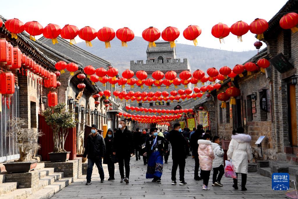 1月23日,游客在山东省青岛市即墨古城游玩。春节假期,处处洋溢着浓浓的年味,人们在喜庆的氛围中欢度新春佳节。新华社发(梁孝鹏摄)