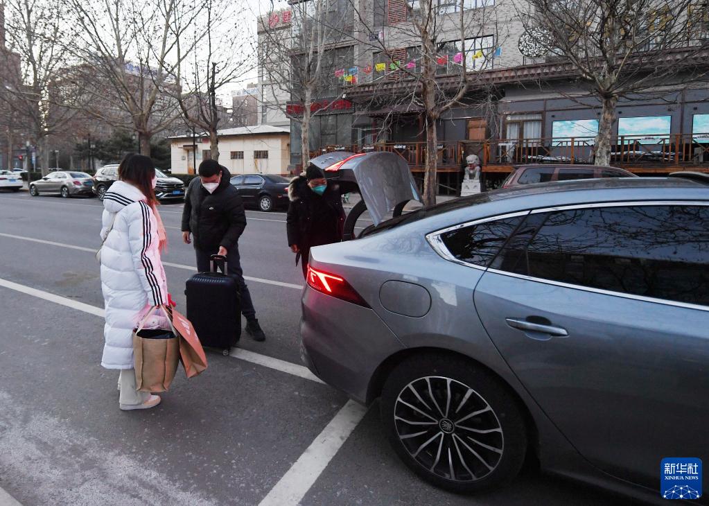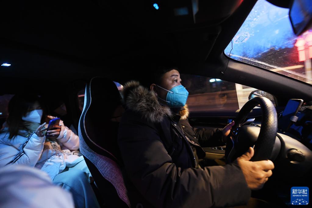 1月28日,滴滴网约车司机刘俊杰的第一单乘客到达目的地。新华社记者 张晨霖 摄
