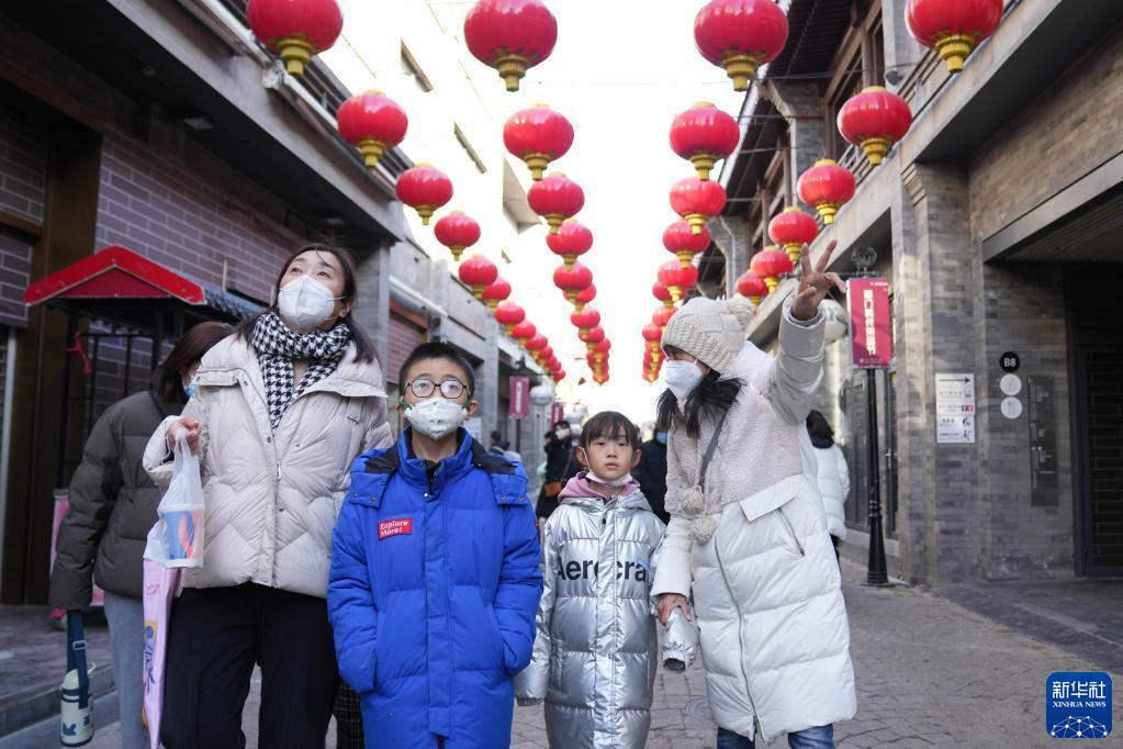 1月28日,在北京市东城区鲜鱼口街,导游何静(右一)在为游客讲解。何静今年53岁,从事导游行业20余年,这个团是她兔年春节假期后带的第一个定制旅游团。她希望兔年大家能多出来旅游。当日是春节假期后开工第一天,各行各业的劳动者从“假期模式”切换回“工作模式”,迎来了兔年开工第一单,记者用镜头记录下他们奔忙的身影。新华社记者 鞠焕宗 摄