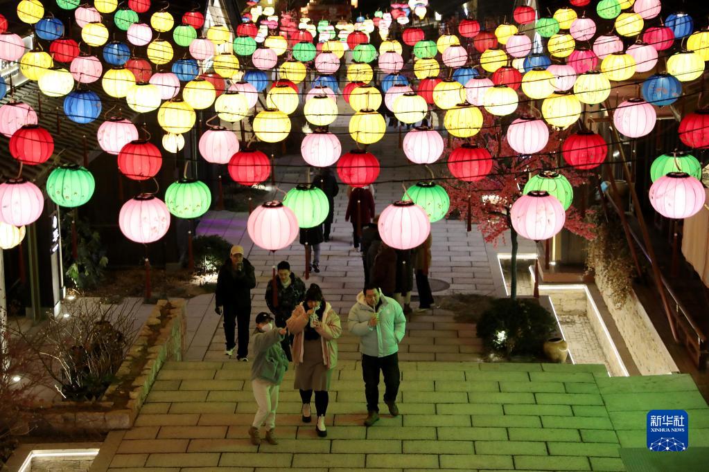 1月30日,游客在山东省青岛西海岸新区阿朵花屿景区观赏花灯。 元宵佳节将至,各地开展猜灯谜、赏花灯、社火表演等活动,热热闹闹迎接元宵节。 新华社发(王培珂摄)