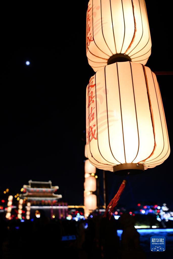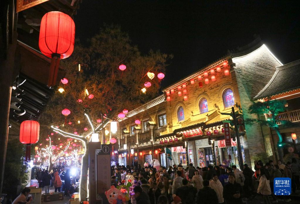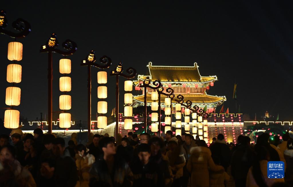 这是2月5日拍摄的浚县古城夜景。当日是农历正月十五元宵节,在河南省浚县古城里,古色古香的建筑配合璀璨灯光,吸引众多游客沉醉其中,度过难忘的元宵夜。新华社记者 蔡湘鑫 摄