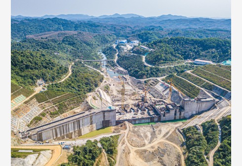 这是2月12日拍摄的迈湾水利枢纽工程(无人机照片)。新华社记者 蒲晓旭 摄