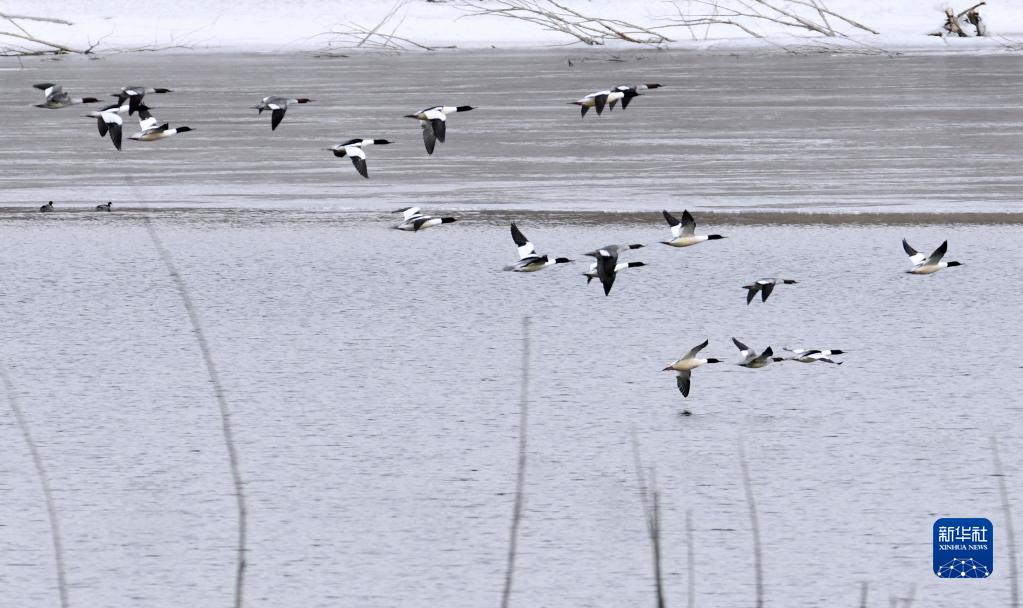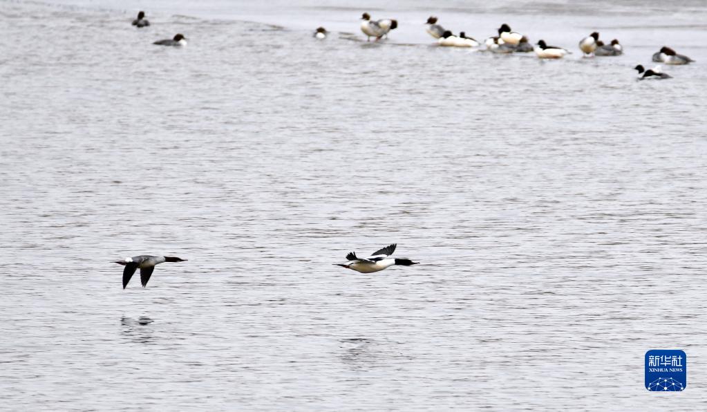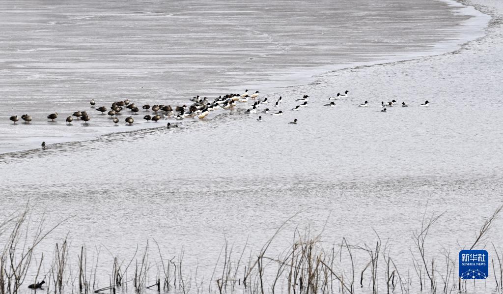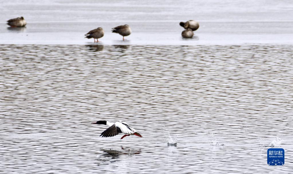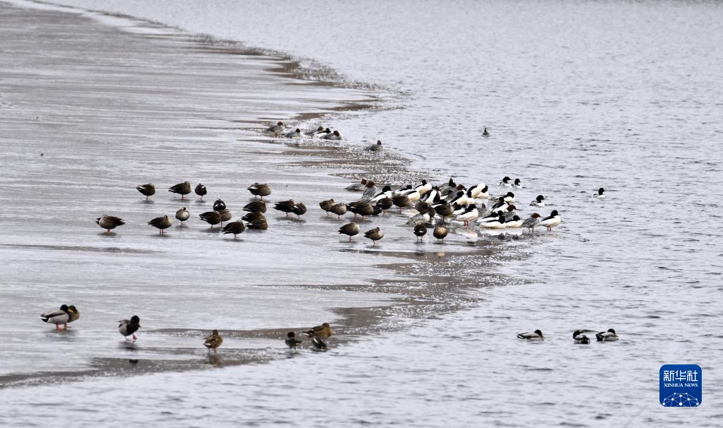 各种鸟类在北京园博湖栖息(2月14日摄)。 随着气温升高,在北京园博园的园博湖上,大批鸟类到水面上嬉戏。近年来,北京加大河湖湿地环境治理和动物保护力度,许多野生鸟类把北京市境内的湿地、河湖作为栖息地。 新华社记者 李欣 摄