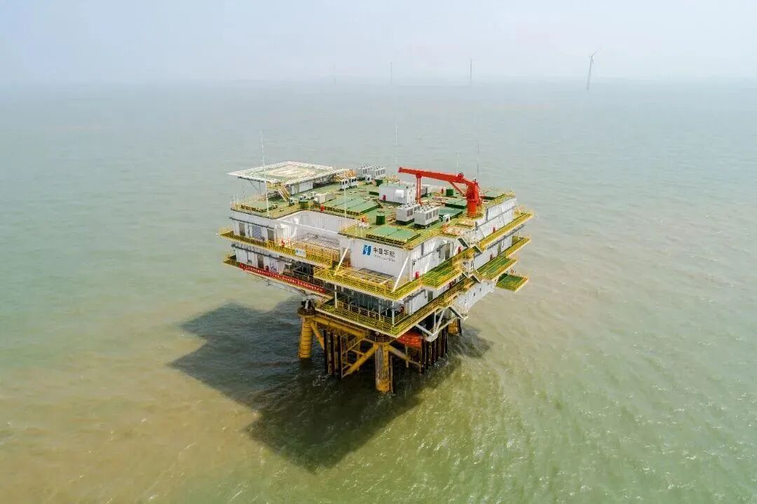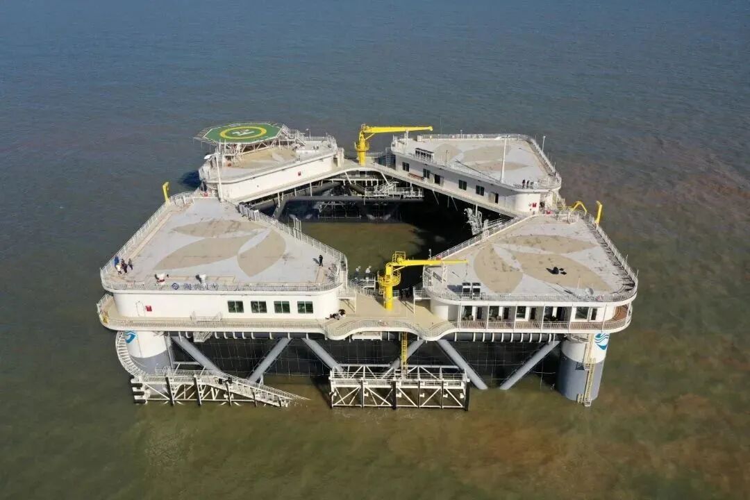 从滨海港登船,驶入茫茫黄海,船行三个多小时,离岸40多公里,一座现代化的海上“城堡”矗立眼前。
