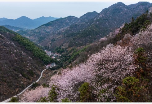 三都镇大唐村山坡上的野樱花纷纷绽放(3月1日摄,无人机照片)。新华社记者 徐昱 摄