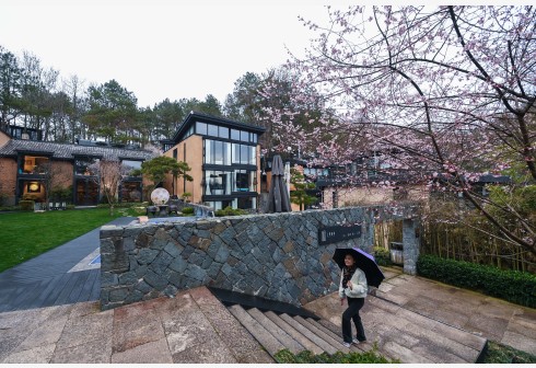 2月28日,游客在三都镇前源村山顶的一家民宿观赏樱花。初春时节,浙江省建德市三都镇大山里的数万亩野樱花绽放,吸引众多游人到此游览拍照。近年来,建德市三都镇推出“醉三都”樱花季赏樱特色游线,打造多条自驾赏樱路线以及多个露营基地、特色民宿,引来了大批外地游客。乡村特色休闲观光游带动了沿线山乡百姓增收致富。新华社记者 徐昱 摄