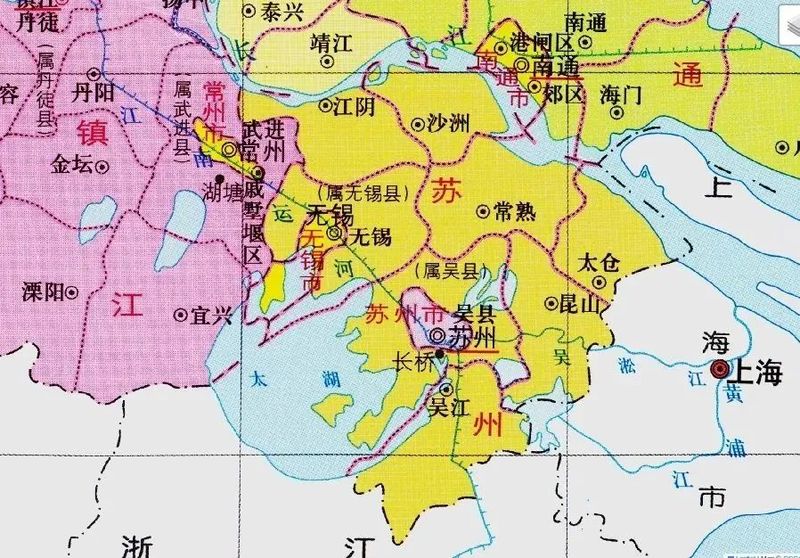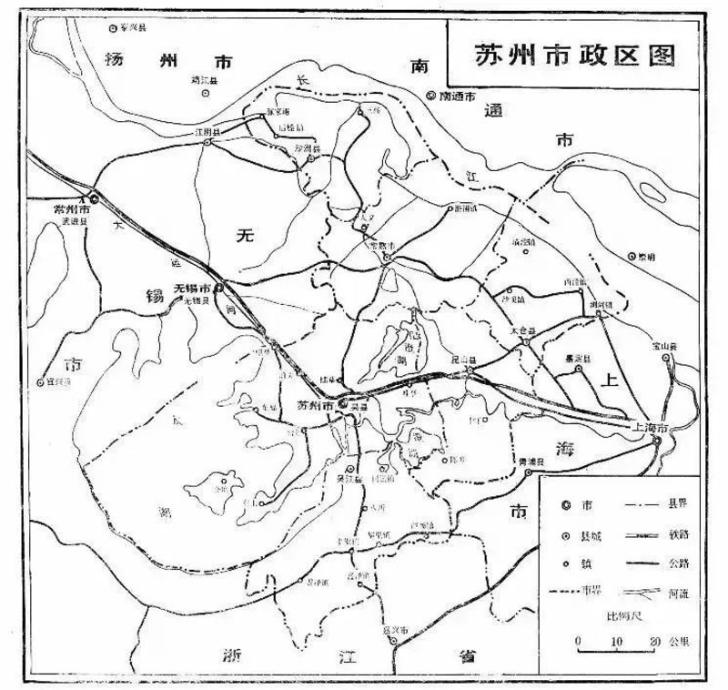 ▲1972-1982年苏州行政区划示意简图