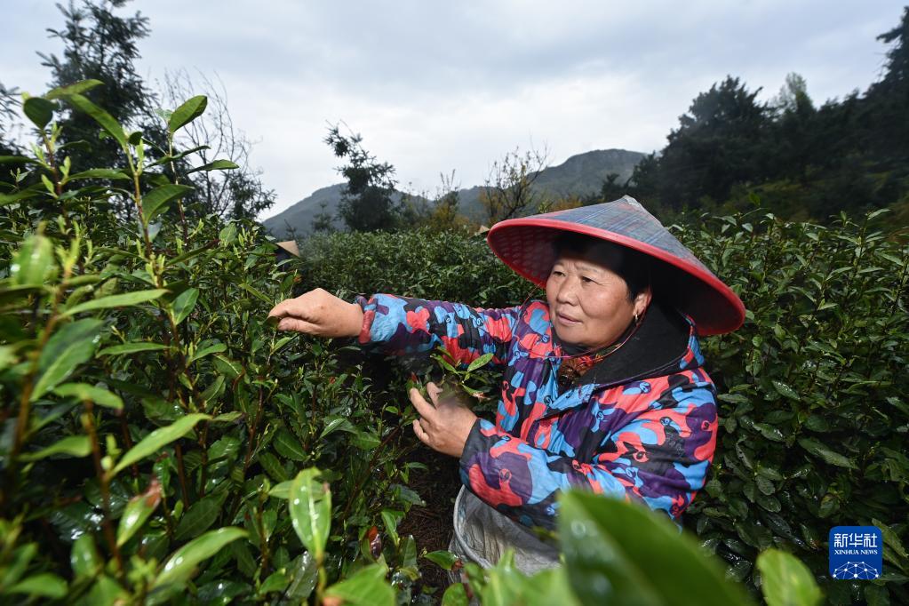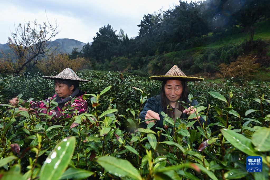 3月22日,赵家镇东庄村上阳自然村的茶农采摘高山有机茶。 新华社记者 徐昱 摄