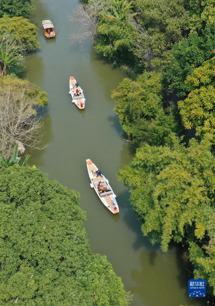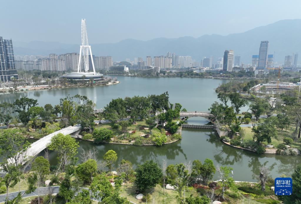 福州西湖公园利用自然山水扩建,与左海公园连接,经过水系综合整治、环境提升及与周边城市景观融合设计等,形成“山、水、城”的“大西湖”景区空间(3月22日摄,无人机照片)。纵横交错的100多条内河是福州城市山水格局的重要组成部分。近年来,福州持续开展西湖综合整治、晋安河清淤等水域综合治理及人工生态湖建设,实现河湖活水循环,把城区内河建成百里水上福道,促进文明河经济河旅游河建设,打造人水和谐共生的宜居之城。新华社记者 林善传 摄