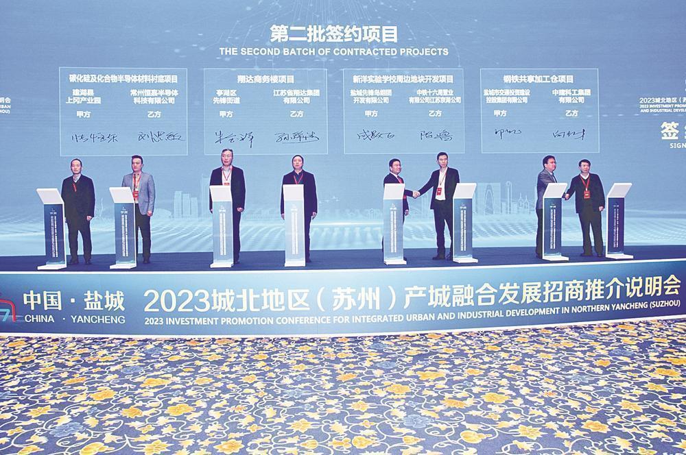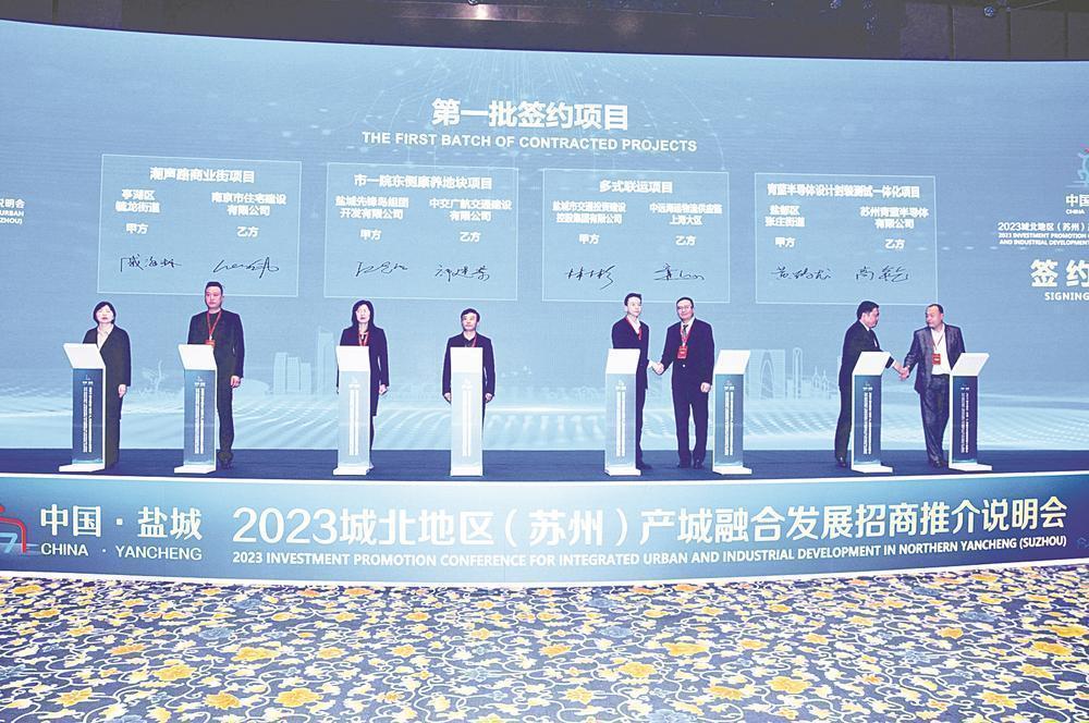 3月21日至22日,中国·盐城2023城北地区(苏州)产城融合发展招商推介说明会成功举办。市城北地区改造工作指挥部和亭湖区、盐都区、建湖县、市城投集团、市交投集团有关人员与100多名企业家代表齐聚一堂,共商发展、共叙友谊、共话未来。活动现场集中签约了近20个大项目、好项目,涉及新能源、半导体、商业综合体、文旅、现代物流、房产建设等产业领域,为城北地区产城融合发展、绿色低碳发展注入强劲新动能。