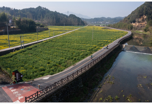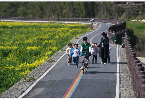 3月28日,游客在杭州市临安区太阳镇的健康骑行道上骑行。近年来,浙江省杭州市临安区太阳镇致力于发展现代高效农业、生态绿色农业,优化农业区域布局,打造具有区域特色的农业知名品牌,不断延长富农产业链,打造现代农业强镇,助力乡村振兴和共同富裕。新华社记者 徐昱 摄
