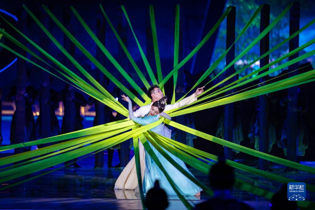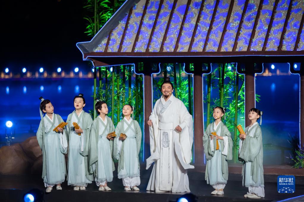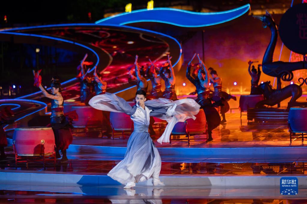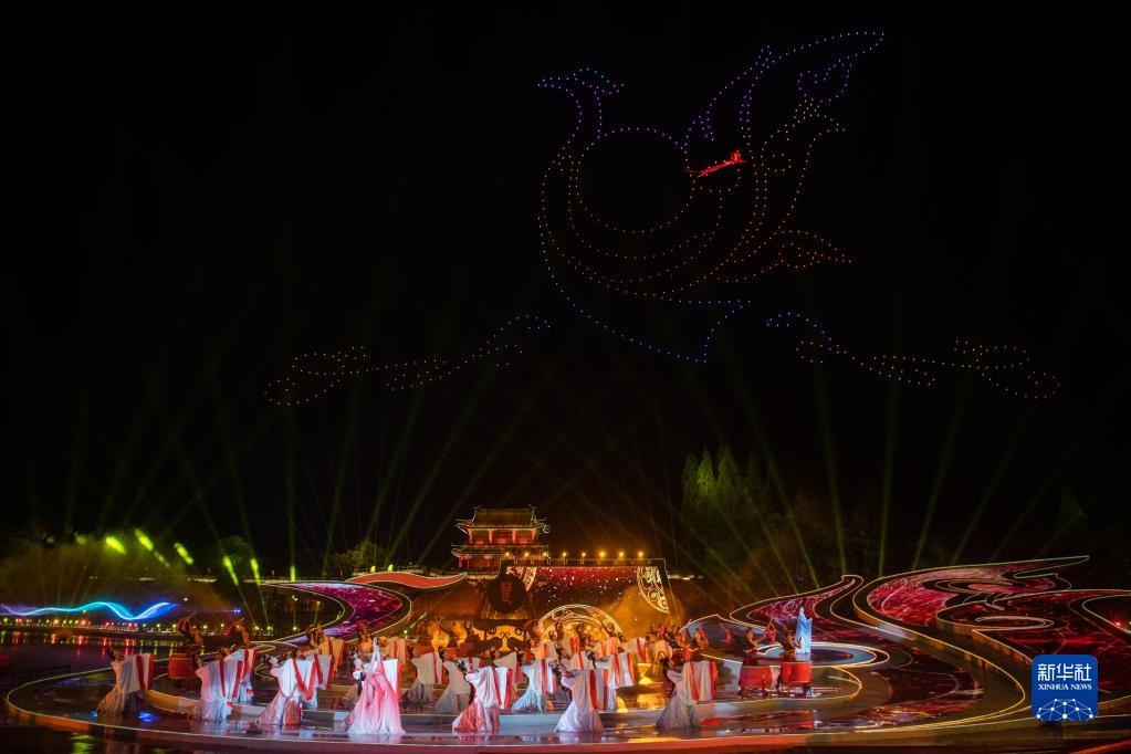 4月8日,演员在开幕式上表演节目。当日,首届楚文化节在湖北省荆州市古城东门宾阳楼护城河水上舞台开幕。本次楚文化节以“传承创新 楚韵荆州”为主题,设计了楚史展览、楚艺大观、楚戏汇演、楚肆赶集、楚地寻游5大版块,及楚王车马阵出土文物展、荆楚非遗秀等一系列子活动,展现楚文化的深厚内涵和时代魅力。新华社记者 伍志尊 摄