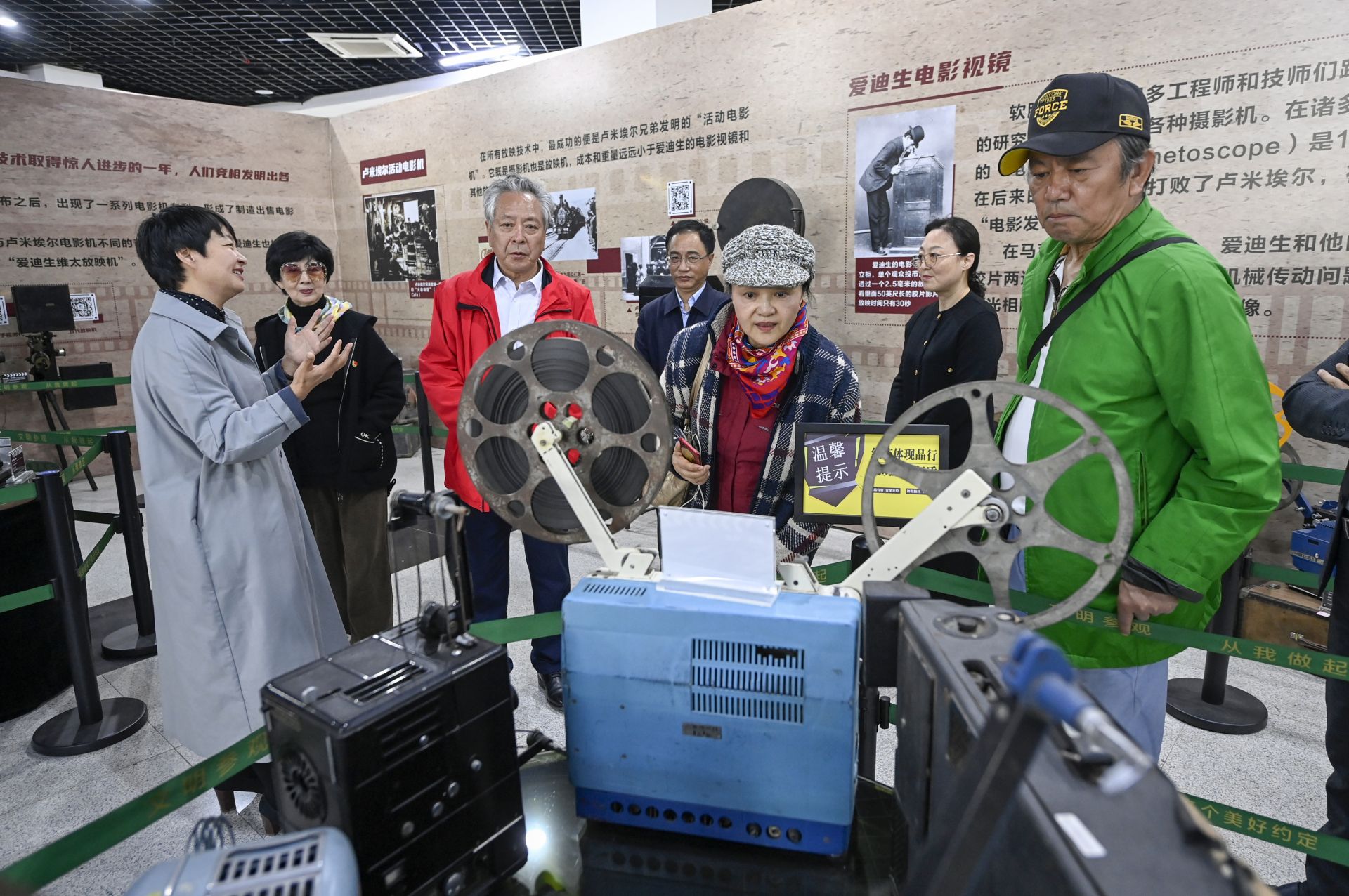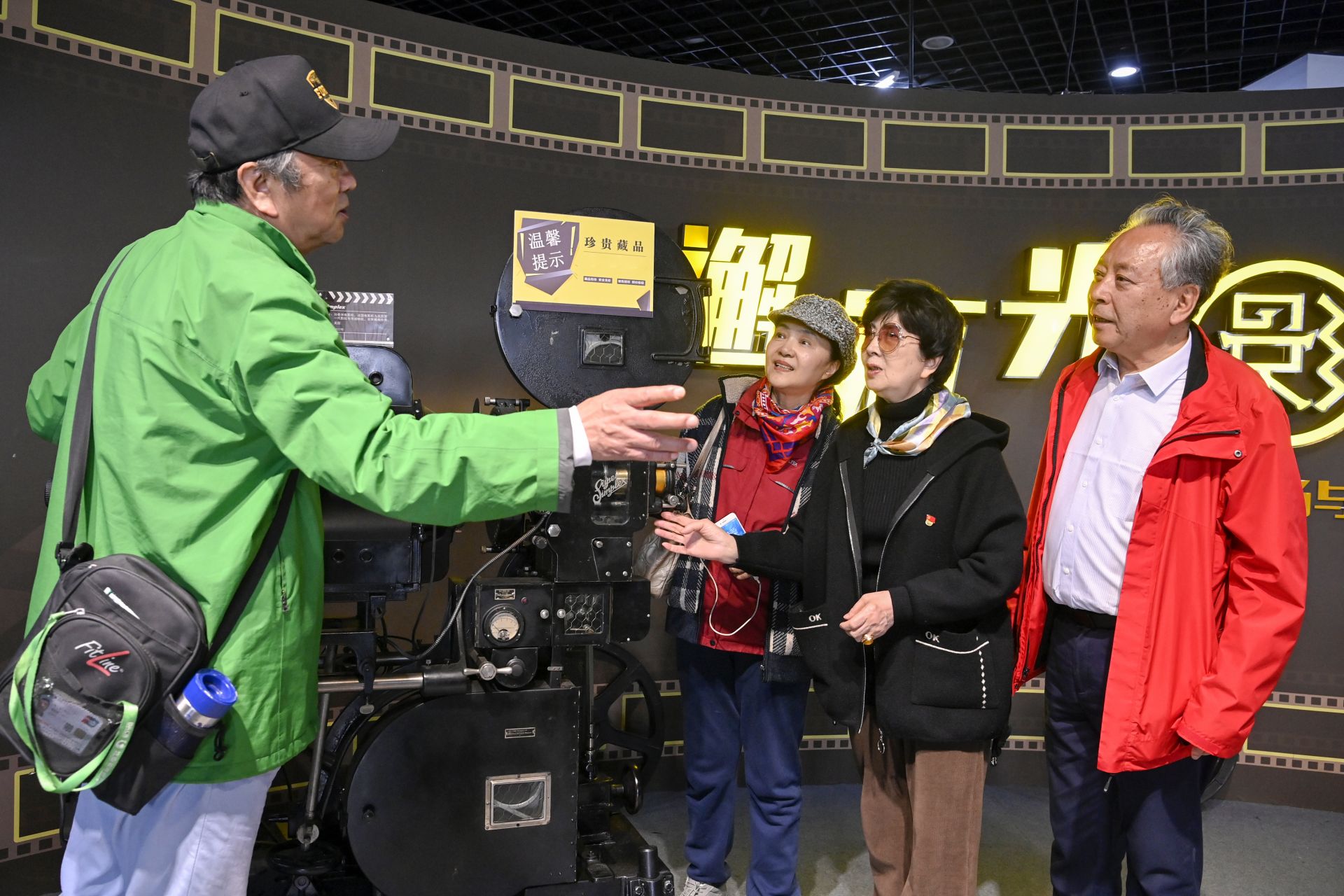 4月10日,20世纪七八十年代活跃在我国电影银幕上的老一辈表演艺术家李显刚、马军勤、吴海燕、李铁军(图一中由左至右)专门来到市科技馆,参观《邂逅光影》老电影技术专题展。专题展展出近300台世界各国电影放映机。跨越百年的展品,从早期 1895 年卢米埃尔兄弟电影放映机到现代数码放映机种类丰富,从无声放映机到有声放映机,从胶片放映机到数码放映机一应俱全。这里陈列的每一台放映机,其实呈现的都是一段厚重的历史。走进展厅仿佛走进了电影放映机的大观园。 盐阜大众报报业集团融媒体记者 周晨阳 摄