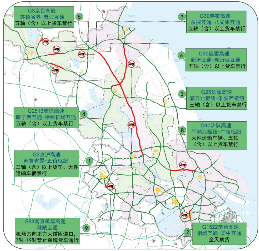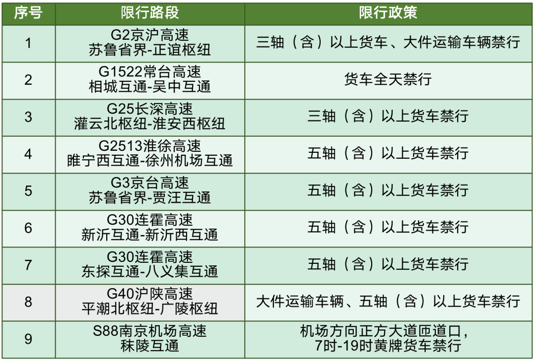【注】除悬挂蓝牌、承担运送鲜活农产品、高速公路抢险救灾和服务区油品保障运输车辆等涉及国计民生运输任务的载货汽车外,其他黄牌货车一律限行。