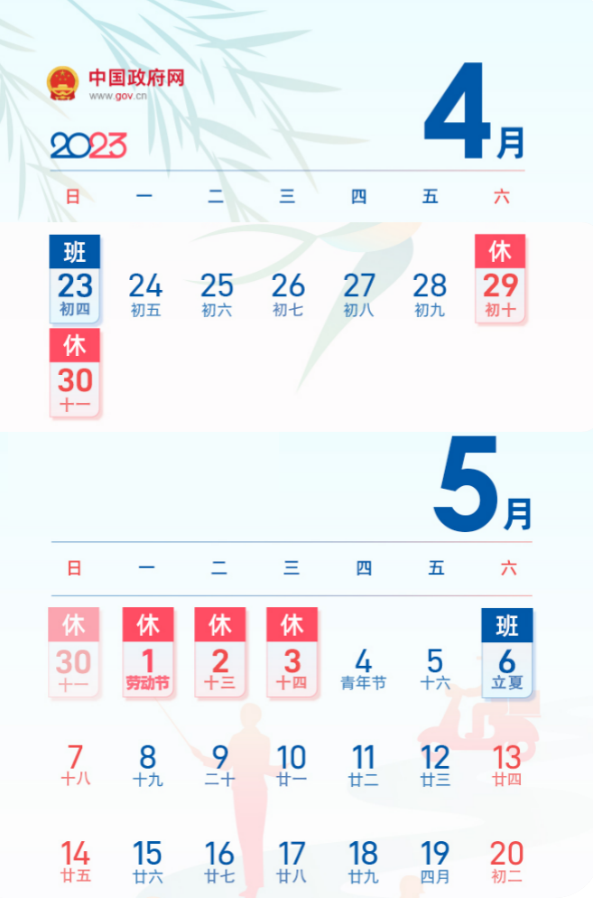 根据国务院安排,2023年劳动节放假时间为4月29日—5月3日。