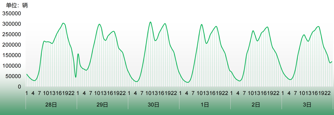 高峰流量——收费站早晚高峰流量大、持续时段较往年长