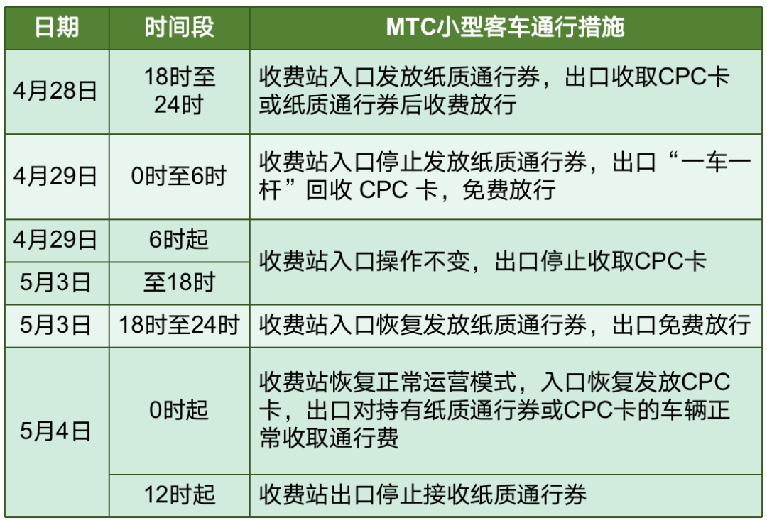 【出行提示】以车辆驶离出口收费车道的时间为准!