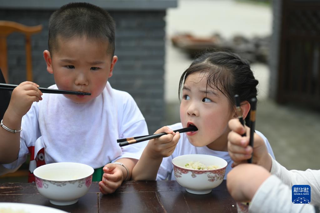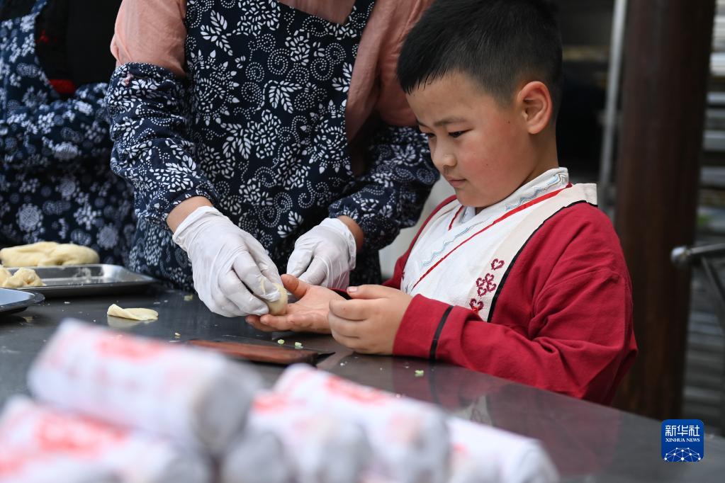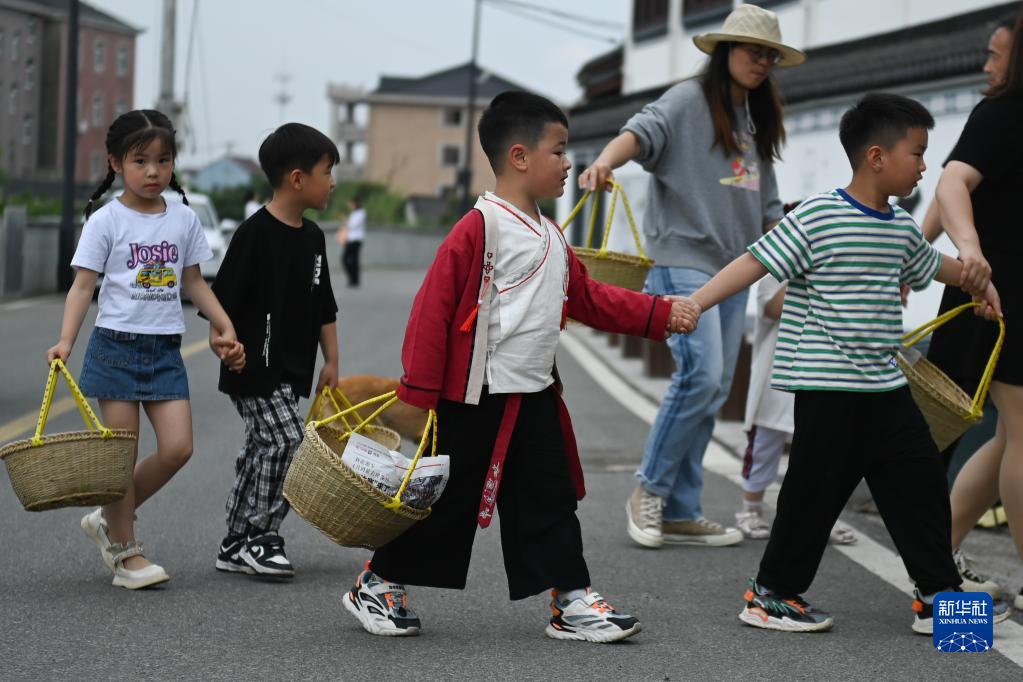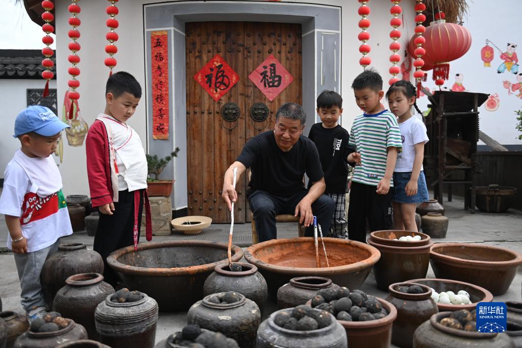 临近立夏节气,浙江省杭州市临平区塘栖镇丁山河村的村民们做米塑“立夏狗”、腌灰鸭蛋、搭土灶蒸“野米饭”等,用江南水乡传统的民俗迎接初夏。新华社记者 黄宗治 摄