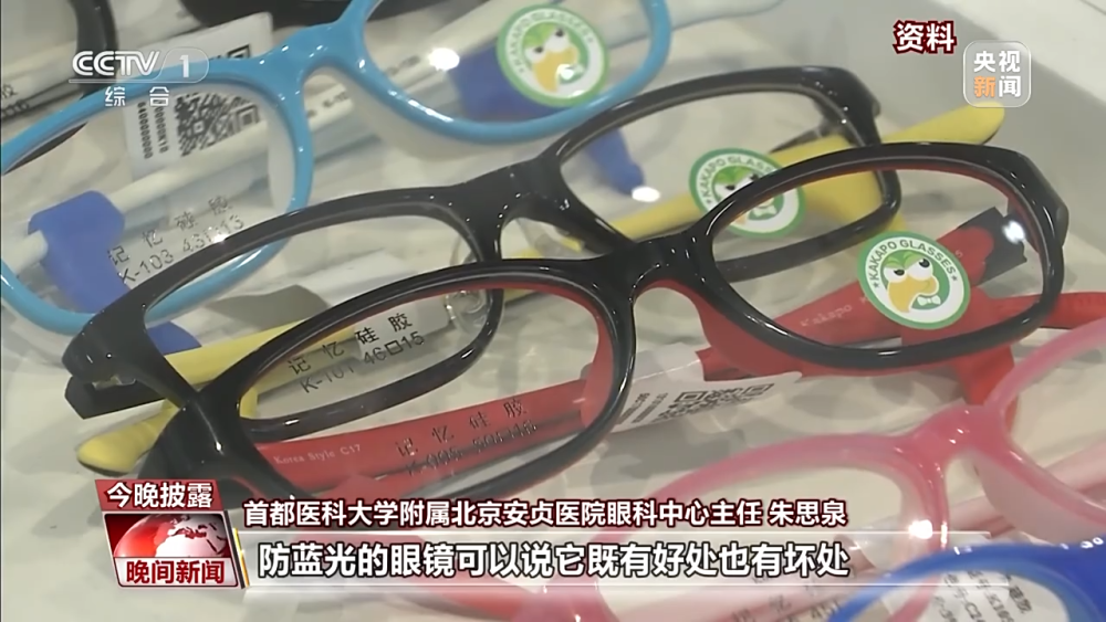 首都医科大学附属北京安贞医院眼科中心主任 朱思泉:防蓝光的眼镜可以说它既有好处也有坏处,因为蓝光对于我们眼睛还是需要的,如果把蓝光都防掉了,可能会睡眠不好,休息不好。但是过度的蓝光确实对眼睛是有损伤的,所以如果看手机或者是看电脑的时间比较长,那么去配一个适当的防蓝光的眼镜还是有一定效果的。如果你看的时间不是很长,那么一般就没有必要去专门配防蓝光眼镜。
