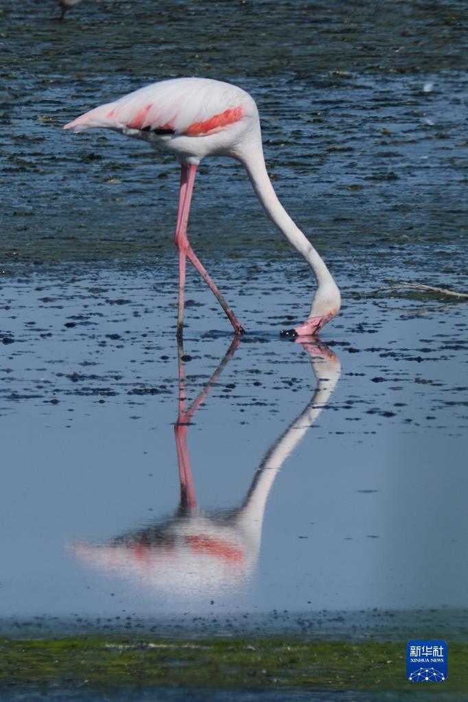 5月8日,火烈鸟在西班牙富恩特皮埃德拉湖觅食。 5月10日,中国邮政发行《中西建交五十周年》纪念邮票,画面表现了中国的衡水湖和西班牙的富恩特皮埃德拉湖,展现两国湖泊的旖旎风光和自然生态特征,意境清朗优美。 新华社记者 孟鼎博 摄