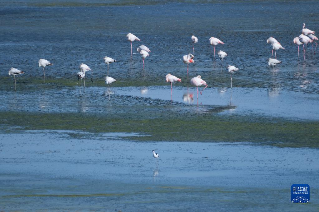 5月8日,火烈鸟在西班牙富恩特皮埃德拉湖栖息。 5月10日,中国邮政发行《中西建交五十周年》纪念邮票,画面表现了中国的衡水湖和西班牙的富恩特皮埃德拉湖,展现两国湖泊的旖旎风光和自然生态特征,意境清朗优美。 新华社记者 孟鼎博 摄